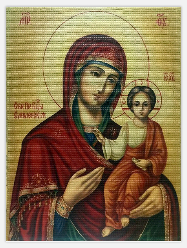 Компания «ММ Мастер Мозаик» приступила к изготовлению из стеклянной мозаики способом уф печать мозаичные Иконы. Иконы изготавливаются из стеклянной мозаики чип 10*10 мм, 20*20 мм. Иконы наклеены на подложку ПВХ двух компонентным клеем и затерты двух компонентной затиркой. Такое изделие можно использовать не только в нутрии помещений, но и на фасаде зданий, так как при данной технологии изделие хорошо переносит атмосферные воздействия.