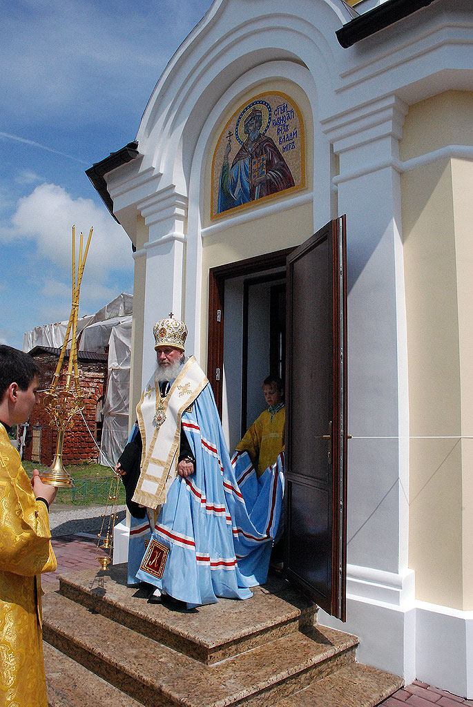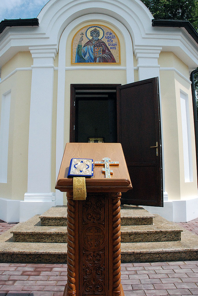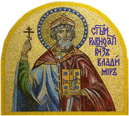 "ММ МАСТЕР МОЗАИК" изготовил мозаичную Икону Св.Владимира из смальты. Икона будет установлена в городе Ржев. Часовня в честь равноапостольного князя Владимира (Россия, С. Маклаки, Думиничского района, Калужской области) В с. Маклаки Думиничского района Калужской области митрополит Калужский и Боровский Климент освятил часовню в честь святого равноапостольного князя Владимира.Часовня расположена на территории восстанавливающегося храмового комплекса в честь иконы Божией Матери «Знамение» и воссоздана в полном соответствии исторической постройке 125-летней давности. Тогда часовня была сооружена в честь 900-летия Крещения Руси. На чине освящения высокопреосвященнейшему владыке сослужили протоиерей Алексей Казаков – благочинный округа, протоиерей Алексей Пелевин –руководитель отдела по работе с благочиниями и приходами, иерей Артемий Арутюнян, духовенство благочиния, протодиакон Сергий Комаров – руководитель епархиальной пресс-службы.