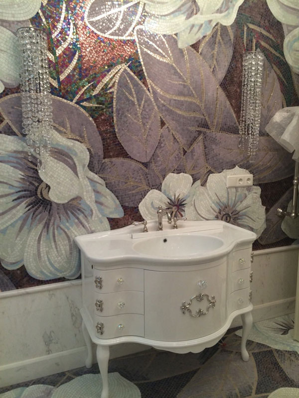 Мозаичное панно из стеклянной мозаики в ванную комнату